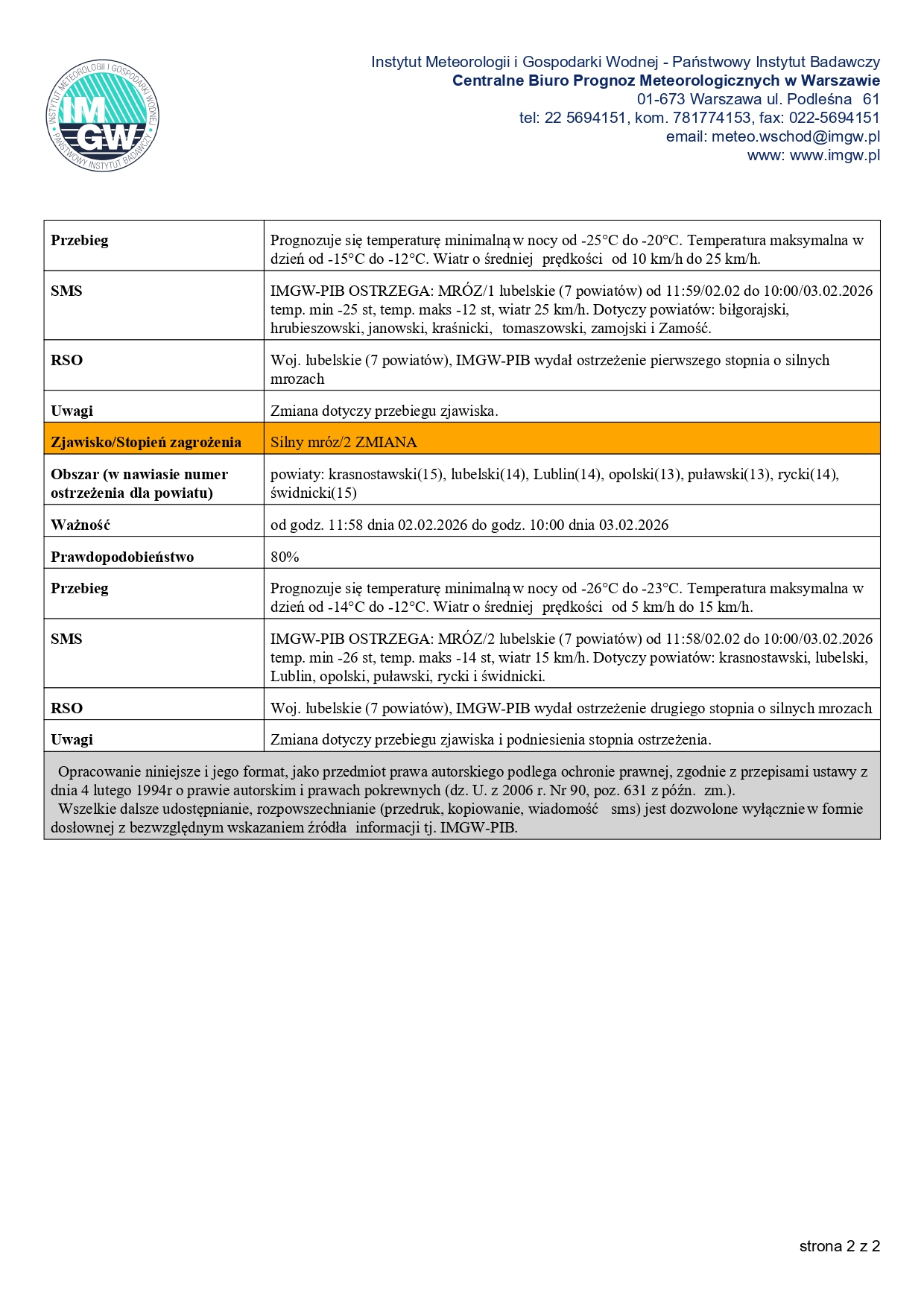 Jesteś tutaj: Start>Ogłoszenia>PROGNOZA NIEBEZPIECZNYCH ZJAWISK METEOROLOGICZNYCH 02-04.02.2026 r.