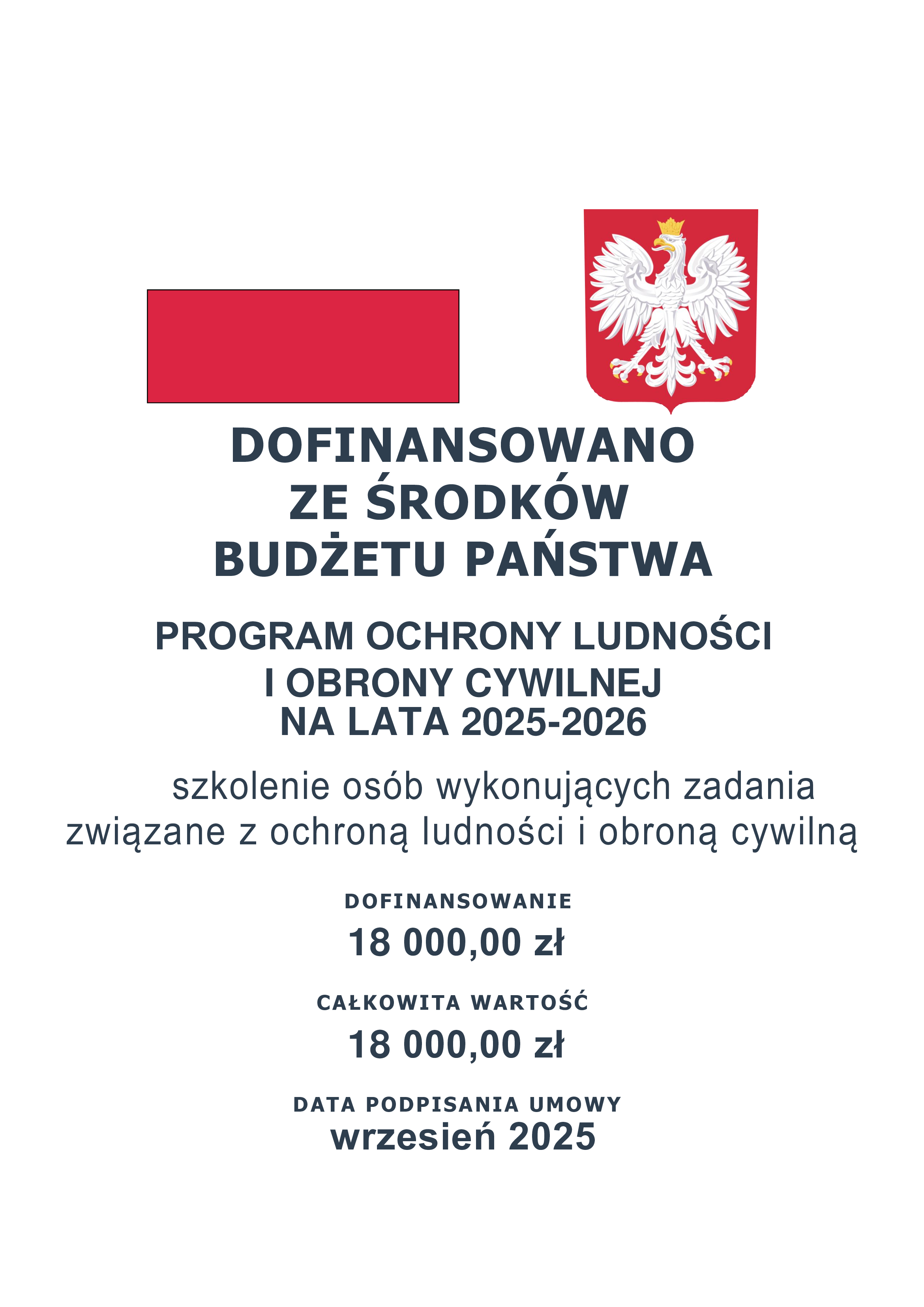 Zadanie realizowane jest w ramach Programu Ochrony Ludności i Obrony Cywilnej na lata 2025-2026 – Obszar 4: Edukacja, szkolenia oraz baza i zaplecze szkoleniowe, zgodnie z przepisami rozporządzenia Ministra Spraw Wewnętrznych i Administracji z dnia 6 lutego 2025 r. w sprawie programów szkoleń z zakresu ochrony ludności i obrony cywilnej oraz wymagań dla osób prowadzących szkolenia (Dz. U. poz. 162).